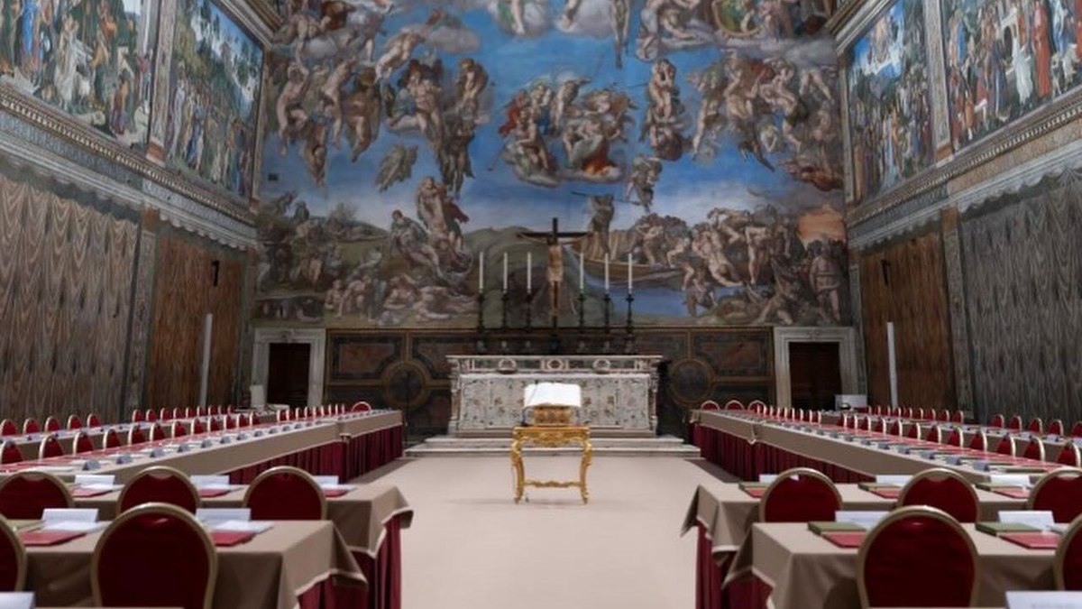 Não há luxo ou ostentação. O espírito é de recolhimento e simplicidade, para refletir a seriedade da escolha do novo Papa.