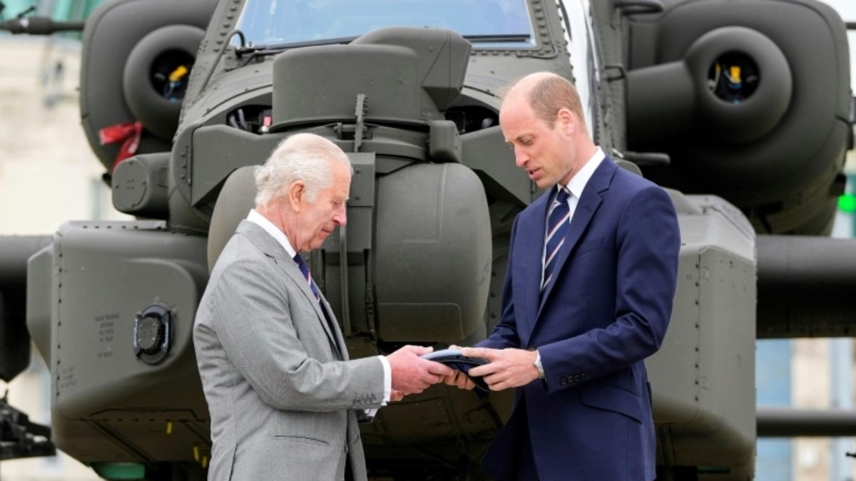 O rei Charles III entregou, nesta segunda-feira (13), seu título de coronel em chefe do Corpo Aéreo do Exército britânico ao seu filho William, cargo honorífico que parecia prometido ao filho mais novo, Harry, durante uma visita a uma base militar.
