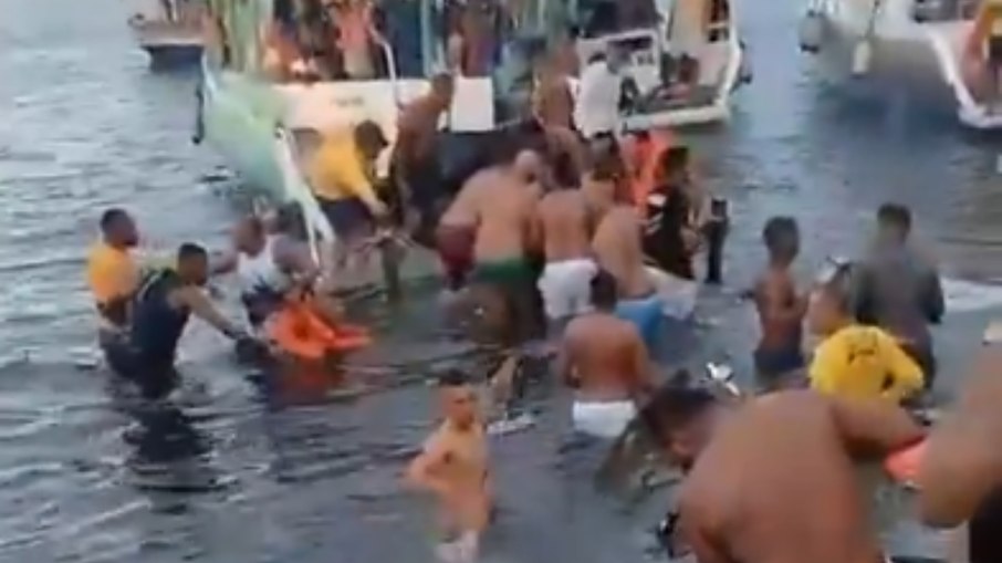 Uma balsa em que acontecia um show de pagode naufragou na orla de Salvador na tarde deste domingo (31). Vídeos que circulam nas redes sociais mostram o momento em que os músicos e outras pessoas que estavam próximas pulam na água para tentar resgatar os instrumentos.