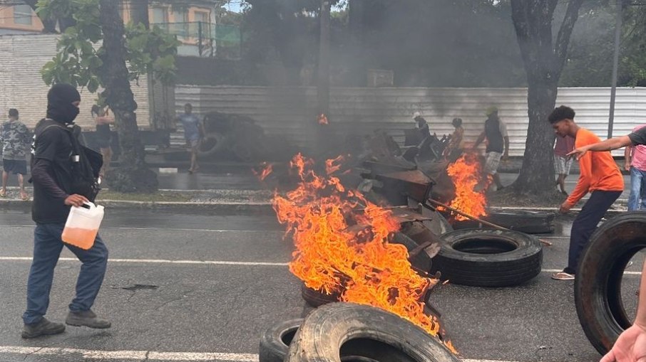 Em imagens que circulam nas redes sociais, manifestante ateiam fogo em pneus e entulho posicionados no meio da via - que é a principal da cidade-, nas proximidades do colégio. O trânsito ficou interditado nos dois sentidos da avenida.