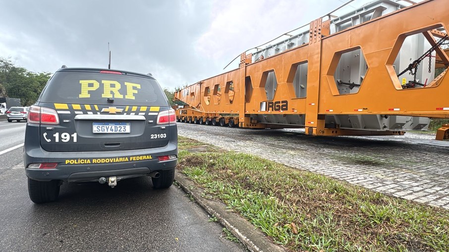 O maior transformador escoltado pela PRF ( Polícia Rodoviária Federal) nos últimos anos chegou ao Porto de Itaguaí, no Rio de Janeiro, nesta quinta-feira (25).