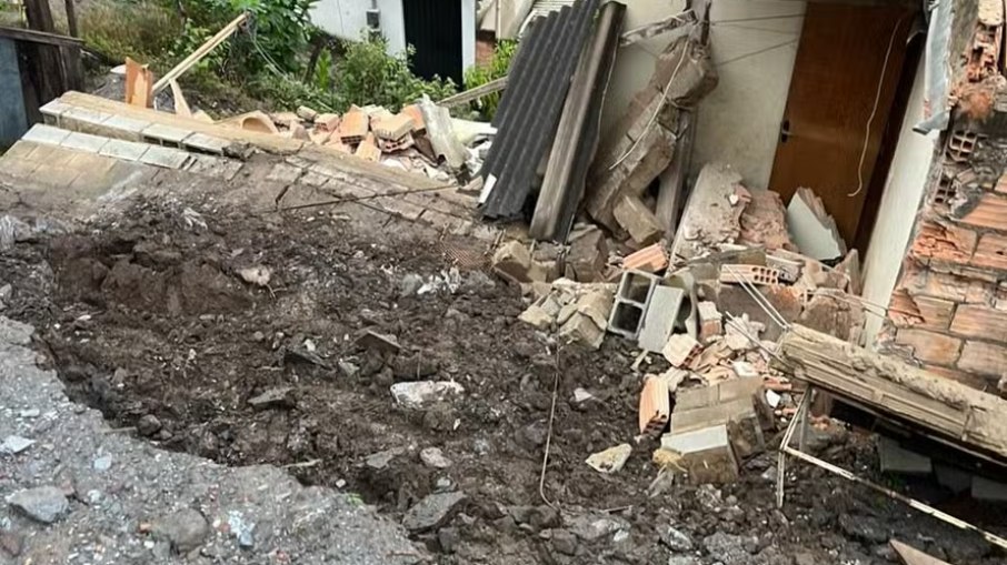 Conforme a corporação, o acidente foi causado pelas fortes chuvas registradas na região, que provocaram a queda de um muro de arrimo desabou sobre a residência.