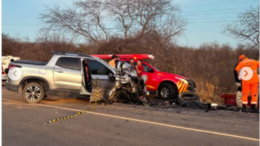Um acidente envolvendo três veículos deixou quatro pessoas mortas na BR-020, no município de Canindé, no interior do Ceará, neste sábado (10). Segundo o Corpo de Bombeiros, três vítimas morreram ainda no local da colisão e uma quarta chegou a ser socorrida, mas não resistiu aos ferimentos após dar entrada em uma unidade de saúde.