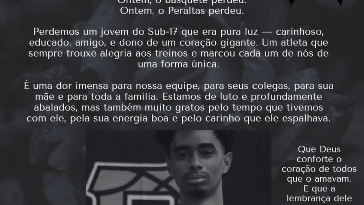 "Perdemos um jovem do sub-17 que era pur luz - carinhoso, educado, amigo e dono de um coração gigante. Um atleta que sempre trouxe alegria aos treinos e marcou cada um de nós".