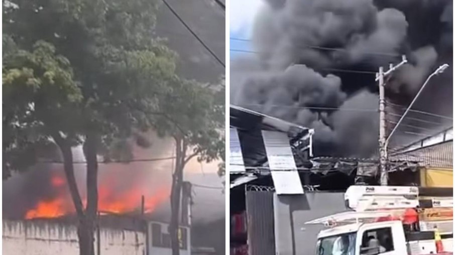 Um incêndio de grandes proporções atingiu um galpão na região de Marquês de Santo Amaro, na Vila Califórnia, na Zona Leste de São Paulo, no início da tarde desta sexta-feira (21).