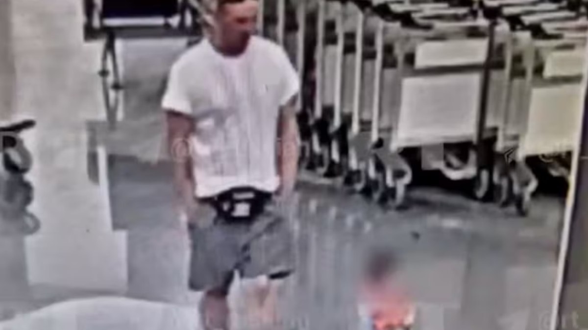 Uma câmera de segurança do aeroporto registrou a cena. O homem aparece ao lado do menino quando, de repente, o pega pelas pernas e joga forte no chão. Depois, ele coloca os óculos escuros e sai andando, sem olhar pro menino caído.