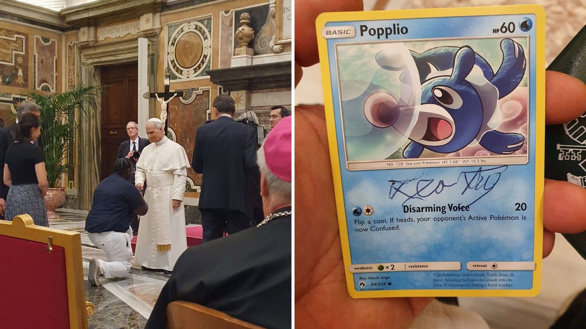 "Meu parceiro conseguiu um card do Popplio assinado pelo Papa Leão."