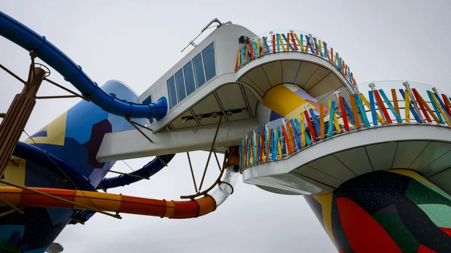 Vídeos que circulam nas redes sociais mostram como ficou o brinquedo após o incidente, com a água caindo do espaço aberto do cruzeiro Icon of the Seas , da empresa norte-americana Royal Caribbean , enquanto os passageiros observam assustados.
