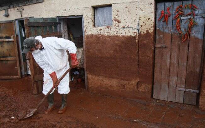 No momento, uma camada de barro vermelho de dois centímetros de espessura, carregada de metais pesados, está esparramada por 40 quilômetros quadrados, incluindo áreas cultiváveis, e segue avançando em direção ao rio Raab, que desemboca no Danúbio.