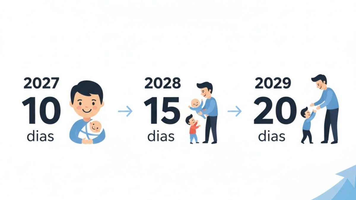 O aumento, no entanto, será gradual, para que empresas e trabalhadores possam se adaptar. O texto prevê que a licença suba para 10 dias assim que a lei for promulgada. Após dois anos, o prazo aumentará para 20 dias, e somente depois de quatro anos atingirá os 30 dias completos.