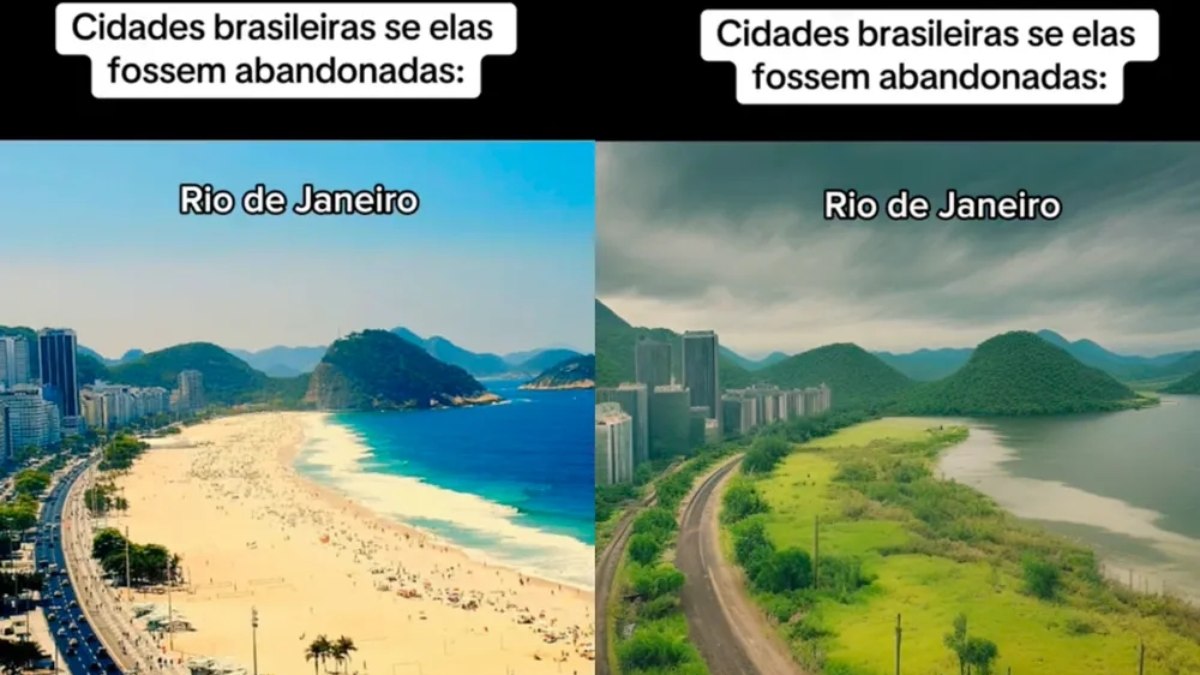 Recentemente, vídeos mostrando como seriam algumas cidades brasileiras abandonadas ganharam as telas do Tik Tok. Com o uso da Inteligência Artificial (IA), as paisagens passaram a ter contornos sombrios. Foto: Reprodução: FliparNos vídeos, é possível ver como os ambientes estão atualmente em comparação com construções vazias e abandonadas. Essa trend se tornou popular, e muitos usuários relembraram séries que reproduzem realidades semelhantes: The Walking Dead e The Last of Us. . Foto: Reprodução: FliparAs imagens podem ser encontradas em uma rápida pesquisa no Tik Tok. Os vídeos rapidamente ganharam engajamento e aparentam ter sido criados através de softwares de IA, como o Midjourney. . Foto: Reprodução: FliparNos clipes, é possível ver grandes pontos turísticos de cidades brasileiras, como: Rio de Janeiro, São Paulo, Belo Horizonte, Vila Velha, Natal e Goiânia. Todas elas foram adaptadas para novas imagens, como se tornassem cidades abandonadas do mapa.. Foto: Reprodução: FliparAlém do Midjourney, o usuário pode criar imagens através de comandos de texto por meio de outras plataformas. Entre elas, estão o Bing Image Creator, CanvaAL e o aplicativo StarryAl, que está disponível para Android e Iphone (iOS).. Foto: Reprodução: FliparA primeira imagem é do Rio de Janeiro, um dos cartões-postais do Brasil. Na foto, é mostrada como a cidade está atualmente. A beleza da praia, com a areia e o mar, que encantam não só os moradores da cidade maravilhosa, como também os turistas.. Foto: Reprodução: FliparPor outro lado, com a Inteligência Artificial (IA), a mesma paisagem foi transformada em uma cidade abandonada. É possível ver a areia da praia tomada por um longo espaço de matagais.. Foto: Reprodução: FliparOutra cidade importante do Brasil que entrou na trend foi São Paulo. A terra da garoa com seus prédios e as intensas rodovias, que diariamente recebem uma grande quantidade de veículos automotivos.. Foto: Reprodução: FliparNovamente, como foi na imagem do Rio de Janeiro, a capital paulistana é transformada através da Inteligência Artificial (IA) e adquire contornos de abandono. Na nova foto, é possível ver que São Paulo também teve o aumento da vegetação, assim como a diminuição dos prédios e escassez de veículos.. Foto: Reprodução: FliparNa brincadeira do Tik Tok sobre as cidades brasileiras, a capital Brasília não poderia ficar de fora. A imagem expõe o Palácio do Congresso Nacional, que é a famosa Praça dos Três Poderes, sede do poder Legislativo do Brasil. A obra foi idealizada pelo eterno Oscar Niemeyer (1907-2012).. Foto: Reprodução: FliparCom a adaptação, uma das cúpulas, que representa o Senado Federal do Brasil, simplesmente desaparece. No entorno, a vegetação aparece totalmente descuidada e abandonada, assim como o espelho d’água, que aparenta estar poluído.. Foto: Reprodução: FliparPara representar Manaus, a capital do Amazonas, a imagem utilizada é a do principal teatro da cidade, que foi inaugurado em 31 de dezembro de 1896. Localizado no Largo de São Sebastião, no Centro Histórico, o teatro foi feito pelo deputado provincial Antônio José Fernandes Júnior.. Foto: Reprodução: FliparComo nas outras capitais, a vegetação toma conta, com aspecto de total abandono. Al falta de veículos e transeuntes ressaltam o que pode ser uma cidade sem qualquer cuidado. A arquitetura de um local, que leva cultura e ao povo manauara, aparece descuidada. . Foto: Reprodução: FliparA Trend também utilizou o centro de Recife para exemplificar uma das capitais mais importantes do Brasil. O Centro Histórico da capital pernambucana traz várias atrações, com uma arquitetura colonial, que são patrimônios culturais e históricos do país.. Foto: Reprodução: FliparA imagem se transforma em um verdadeiro mausoléu, com estruturas arquitetônicas inacabadas. Além da alta vegetação como em outras capitais, um local que transmite alegria e sempre é tomado pelo frevo no carnaval, ganha contornos de abandono.. Foto: Reprodução: FliparRepresentando o Sul do país, a imagem de Curitiba é do Jardim Botânico da cidade. O ponto turístico tem o formato de uma estufa tropical, com três cúpulas. Além de uma área arborizada com trilhas e um jardim sensorial. . Foto: Reprodução: FliparCom o uso da Inteligência Artificial (IA), o local se transforma em um espaço mal acabado, sem vida e com alta vegetação. As flores expostas na entrada dão espaço apenas para um matagal à frente do Jardim Botânico Municipal.. Foto: Reprodução: FliparProjetada por Oscar Niemeyer, a Estação Cabo Branco representa João Pessoa, capital da Paraíba. O local tem a missão de levar cultura, arte, ciência e tecnologia à população de forma gratuita.. Foto: Reprodução: FliparPara exemplificar uma cidade abandonada, o local aparece com rachaduras na estrutura e uma vegetação sem qualquer cuidado. Os espelhos da Estação Cabo Branco aparecem quebrados e a torre sem sua cor predominantemente branca.. Foto: Reprodução: FliparOutra cidade representada na trend é Fortaleza, que apresenta a imagem com prédios e o mar, que sempre atrai turistas não só de outros estados, como de fora do Brasil. . Foto: Reprodução: FliparCom auxílio da Inteligência Artificial (IA), o mar escurece, enquanto a areia é tomada pela alta vegetação. Ao fundo, os prédios se tornam lugares escuros e sem condições de moradia.. Foto: Reprodução: FliparEm mais uma capital nordestina, Natal é caracterizada pelo mar bem cuidado e límpido. Segunda capital brasileira com menor área territorial, mas com a sexta maior densidade populacional do país, a cidade possui uma beleza que atrai turistas e uma rica história. . Foto: Reprodução: FliparO mar se transforma, então, em um lamaçal, próximo a um pântano. Ao fundo, as casas dão lugar à vegetação mal cuidada para representar uma cidade abandonada.. Foto: Reprodução