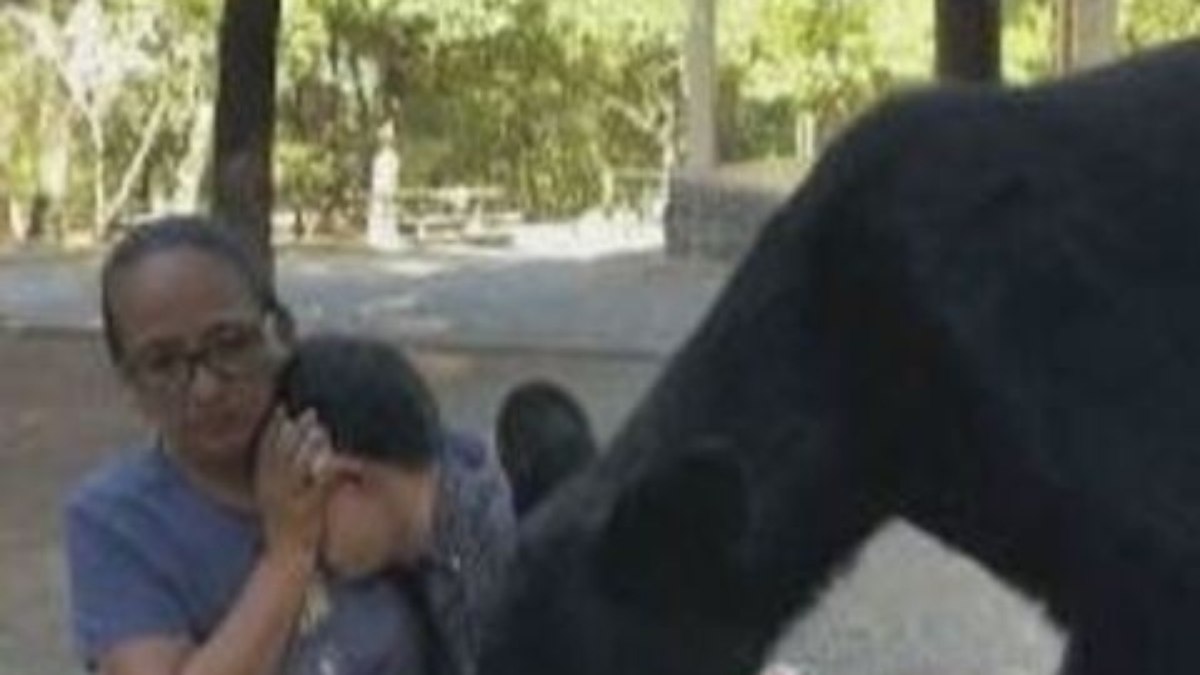 Urso-negro invade piquenique; e mulher se faz de estátua para proteger criança